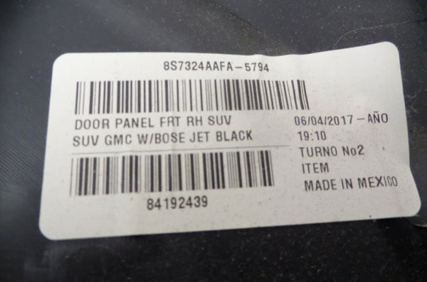 Description: Front Right Passenger Side Door Panel Jet Black Conditions: New Manufacture: GM Year fitment: Models:
